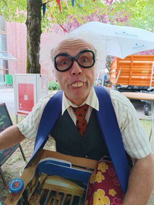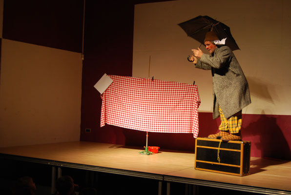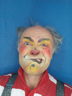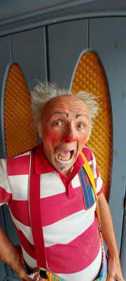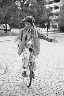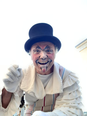 Schaut Euch diese Bilder an..., Clown Pippo in Aktion - als er selbst, als Zirkusdirektor, auf seiner Gelben Reise nach China, auf dem Einrad, als Kobold Semmefuiz,